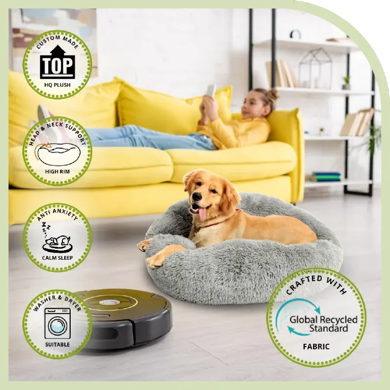 🐶 Pet Laud Calming Dog Beds are made with the highest-quality Global Recycled Standard (GRS) fabric, so you will get a lasting bed for your furry friend.