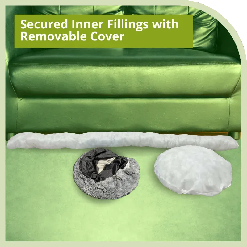 To ensure long-lasting usability, the Pet Laud dog donut beds have TWO added features: 1) removable zipper covers, and 2) fiber fillings secured in the lining. These features keep the bed in shape and operational for a longer time.